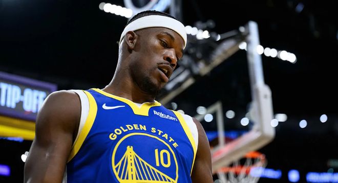 賽季至今,庫里的使用率高達(dá)33.4%,堪稱球隊的頂級進(jìn)攻發(fā)動機, 進(jìn)攻效率為116.7 ,效率差則是+3.5,效率值(PER)高達(dá)22.3,本賽季勇士對庫里的極度依賴已經(jīng)達(dá)到頂峰,這也間接暴露出勇士第二核心巴特勒的帶隊能力存在很大的問題。當(dāng)勇士在上賽季中期交易得到吉米·巴特勒時,管理層期待這位硬漢能成為庫里身邊最得力的幫手,延續(xù)球隊的奪冠窗口期。上賽季在庫里出色狀態(tài)遮掩下,巴特勒一直扮演完美二當(dāng)家的角色,但是當(dāng)季后賽庫里遭遇傷病后,巴特勒獨木難支,勇士被森林狼淘汰出局。巴特勒場均僅得20.3分,甚至低于庫明加的24.3分。